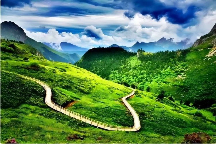 【官鹅沟】(门票+景交+景区保险已含,车程约1小时, 游览约3小时)国家5A级景区,国家森林公园,构造建造型地质遗迹类国家地质公园。景区内气候湿润、幽谷纵横,峡曲林密、峰奇石怪,草甸与花海相映、雪山与碧湖交辉,涧水接飞瀑、高岩藏古木。既有北国之雄奇,又有南国之秀丽。