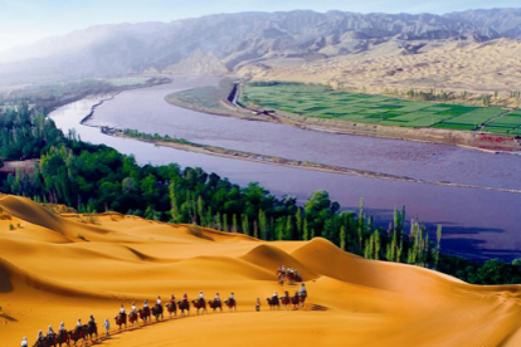 酒店早餐后可嗨玩【沙坡头景区】(含门票,景区交通娱乐项目自理,游览时间3小时),跨越黄河金岸,集大漠、黄河、高山、绿洲为一处,沙海浩瀚,黄河横穿,既具西北风光之雄奇,又兼江南景色之秀美。