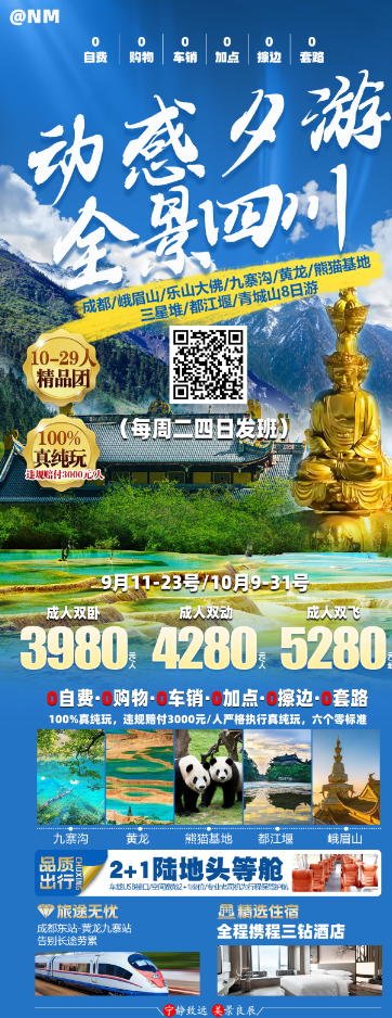 峨眉山半山景区-乐山大佛登山-美食街-乐山站动车-黄龙九寨站-川主寺镇/沟口