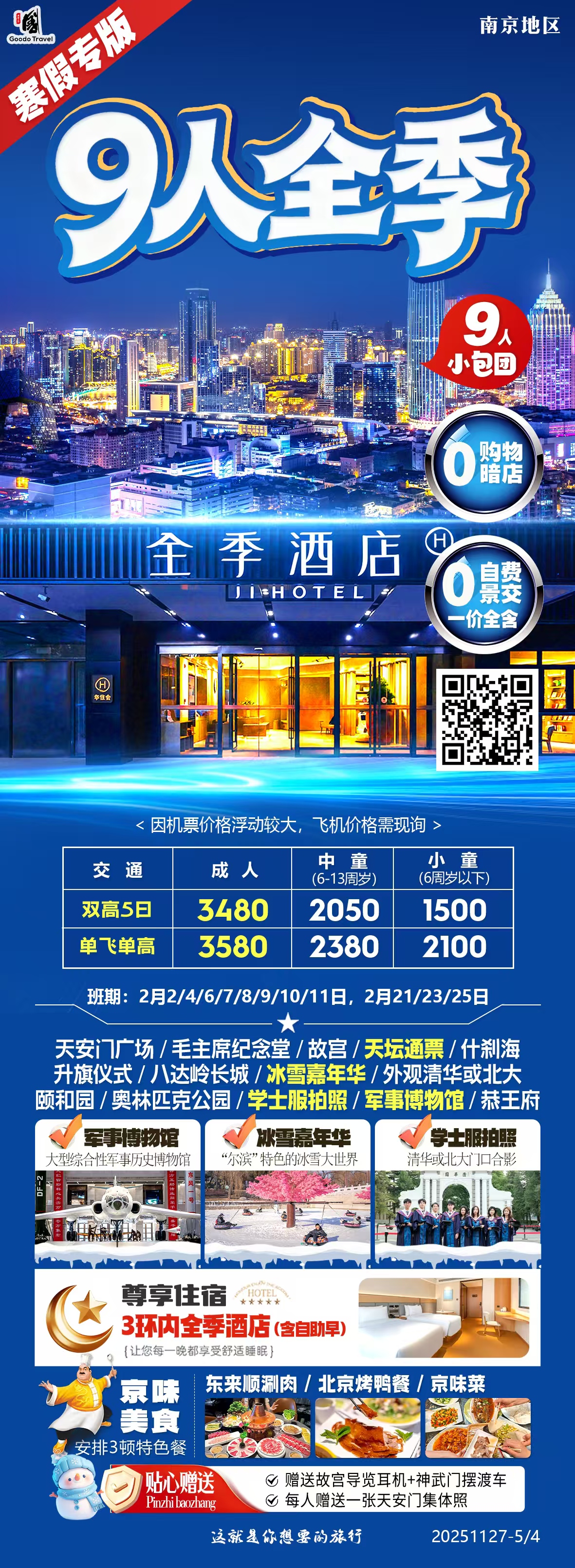 2026年寒假9人全季5天4晚跟团游0购物0暗店0自费0景区小交通,一价全含!!!