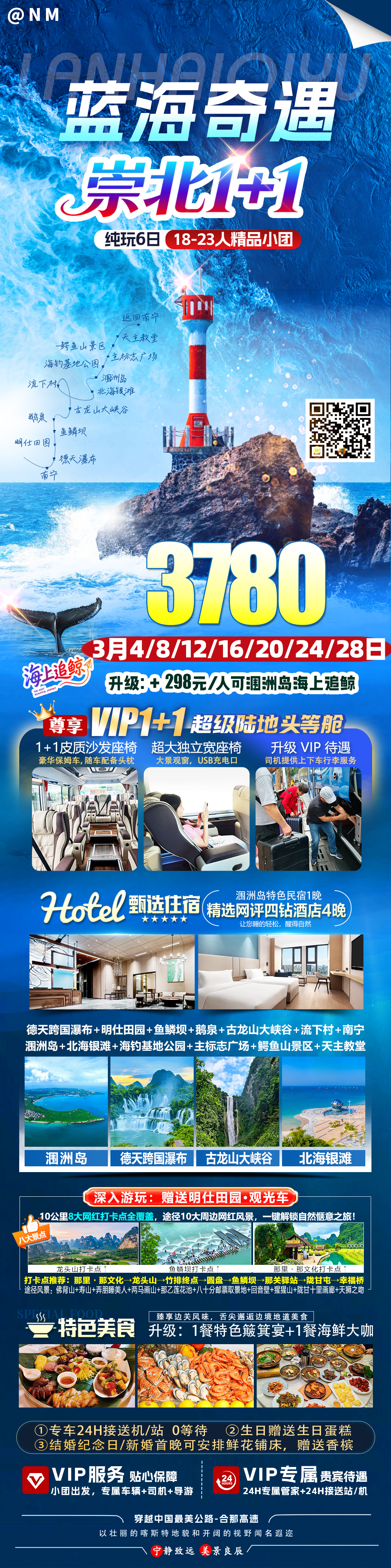 5.因为涠洲岛的资源相对匮乏及各种不确定因素地接旅行社有权调整为当天入住北海,次日早上上岛下午下岛,敬请谅解,