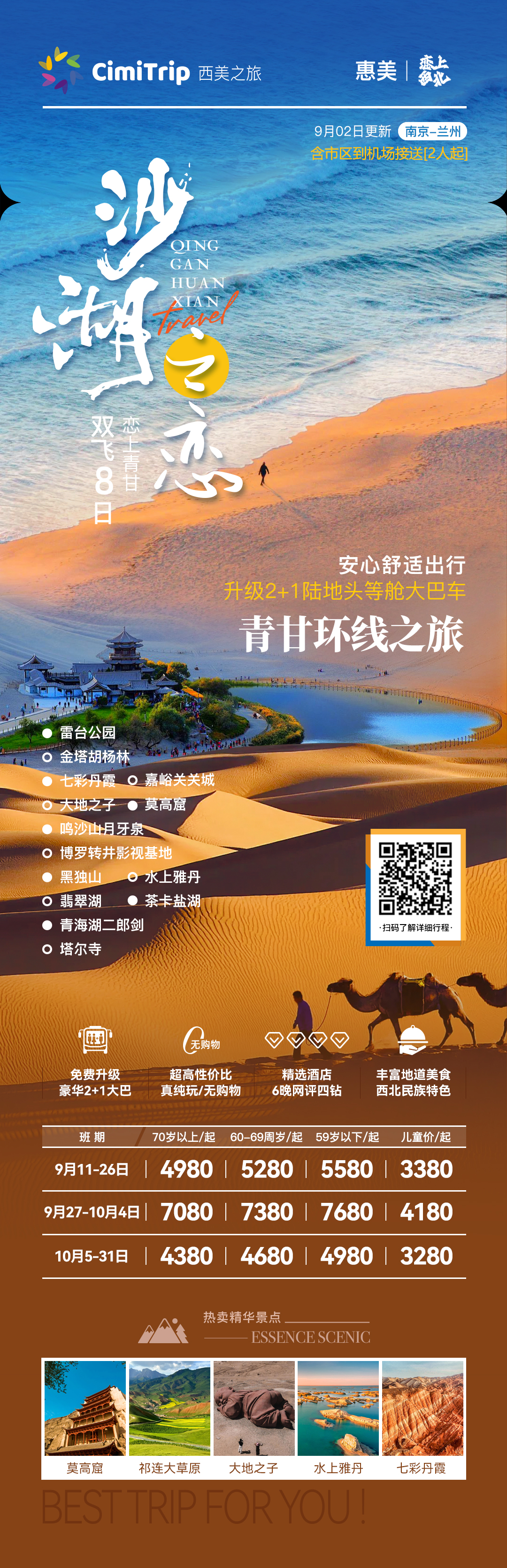7.【青海湖】 游船140-180元/人、 小火车120元/人(选消) ;
