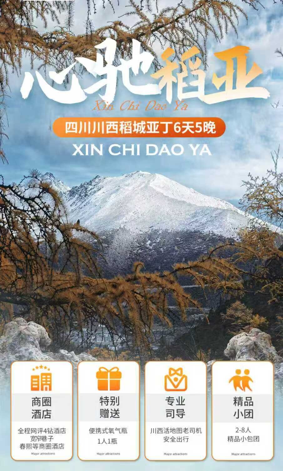 [心驰稻亚]四川434网红机场路+鱼子西+理塘+稻城亚丁+日瓦镇+雅江+新都桥6天5晚跟团游当地参团|2-8人小包团|心驰稻亚休闲之旅|稻城亚丁川西诗性方式献给向往纯粹的灵魂