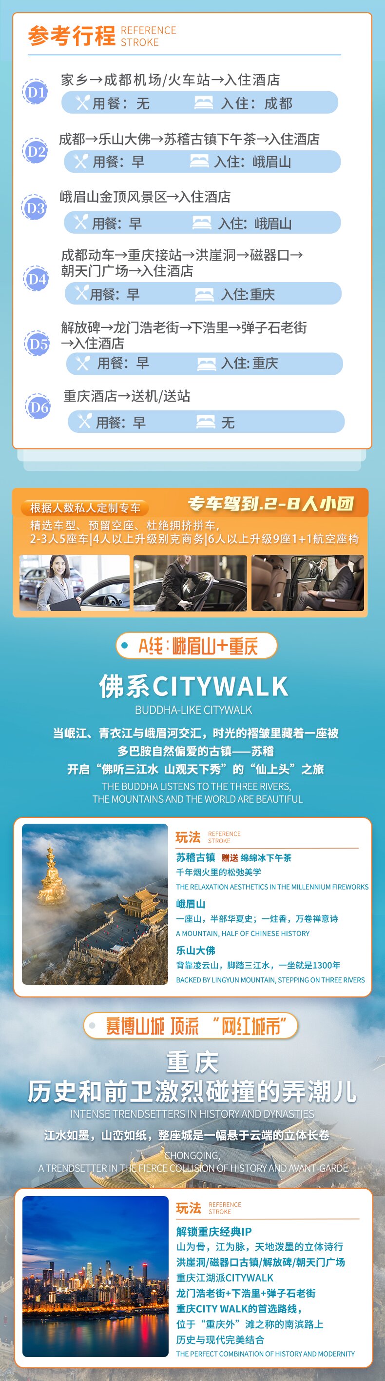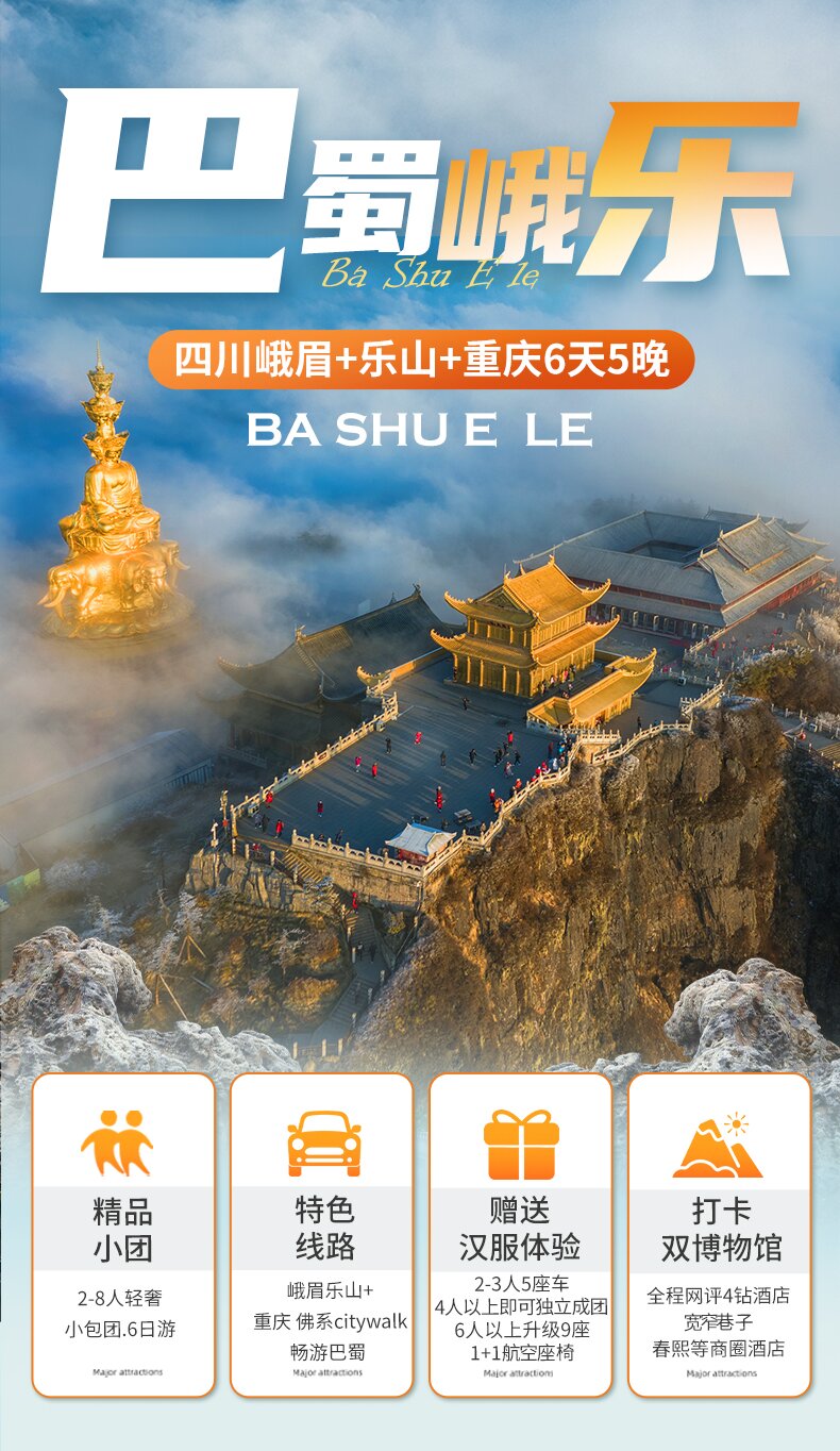 [巴蜀.峨乐]四川峨眉山+乐山大佛+重庆市区6天5晚跟团游当地参团|2-8人小包团|巴蜀峨乐休闲之旅|我们诚邀您一起享游峨眉山、乐山大佛、重庆市区