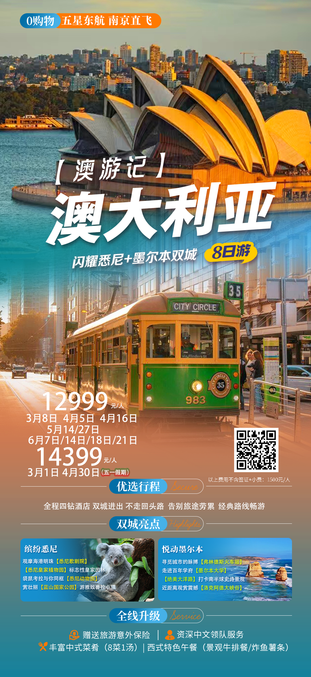 国旅自组特价班期【澳游记】澳大利亚双城8日(悉尼进墨尔本出)悉尼+墨尔本8日6晚