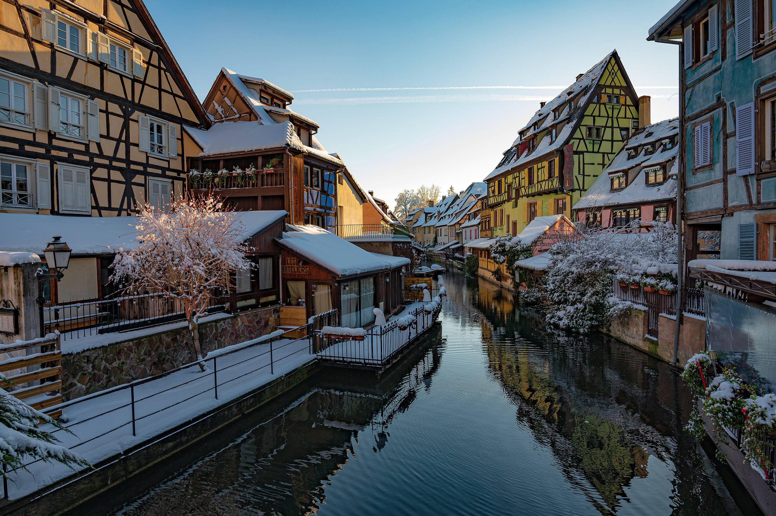 早餐后科尔马小镇【科尔马】观光(游览约1小时),是宫崎骏电影《哈尔的移动城堡》原型,伊尔河支流酪赫河静静淌过,清清的河水荡涤了浮躁的尘埃。任由平底船轻轻滑过……一进到小镇那强烈的印象已经停留在了记忆的最深处。如童年搭过的积木一般的木筋屋,有尖尖的屋顶的教堂,有彩虹的缤纷小河,有鲜花的簇拥的窗口,有五颜六色的橱窗,《哈尔的移动城堡》中的小镇在科尔马逐渐被还原。雨过了没有艳阳的下午,没有熙攘的人群,没有嘈杂的街巷,中世纪的石板路上干净整洁,偶尔几个过往的游客和骑行的市民,一幅画面将童话般的科尔马定格。