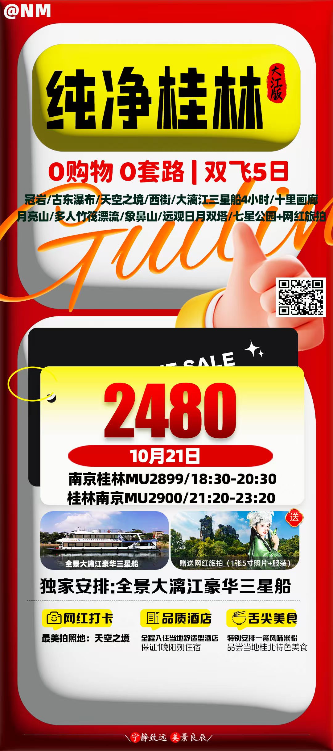 桂林:特价纯净桂林双飞5天4晚跟团游桂林:特价纯净桂林双飞5天4晚跟团游
