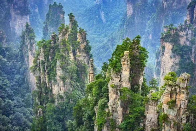 【森林公园-袁家界】(百龙电梯下山,费用已含)探寻《阿凡达》电影中的群山漂浮、星罗棋布的玄幻莫测世界--“哈利路亚山”即“南天一柱”(又名乾坤柱),参观云雾飘绕、峰峦叠嶂,继往气势磅礴的迷魂台、天下第一桥等空中绝景;