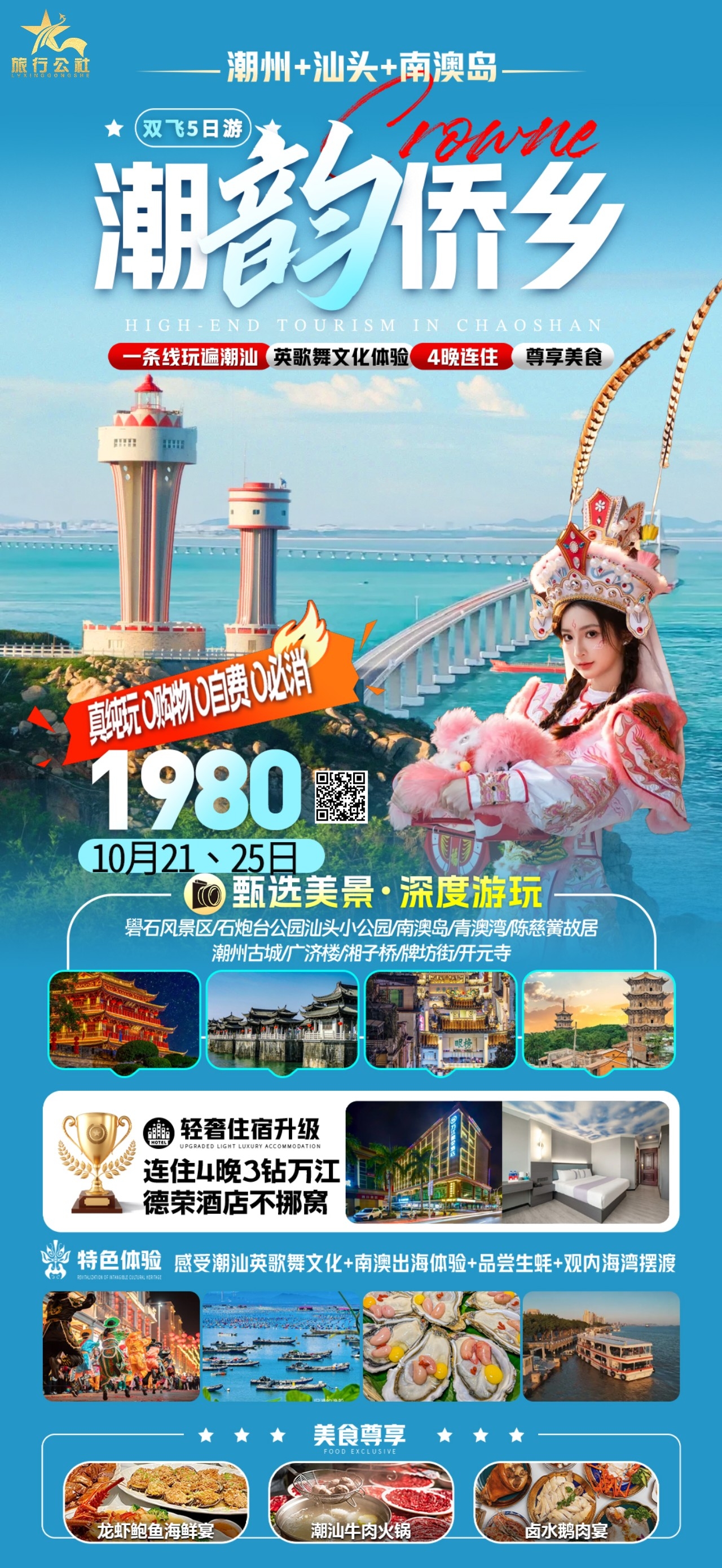广东潮汕潮韵侨乡双飞5日游跟团游潮州汕头南澳岛一条线玩遍潮汕