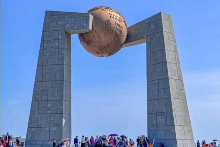 50.89 ”。对标志塔主体石柱干挂零件采用抗腐蚀的不绣钢,整个球体像载人航天飞机返回舱,球体内各个支撑点均匀的撑开,保证了球体的均匀和稳固。并可承受 12 级台风, 远观我国沿海地区最大的风能发电场——风车山。