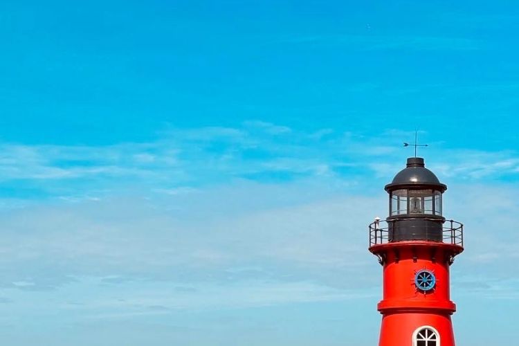 打卡网红灯塔——【启航广场灯塔】(约 30 分钟) ,渡口新建成的这座灯塔,塔身红艳醒目,背景就是让天堑变通途的南澳大桥,已成为抵岛打卡第一点。南澳大桥线路全长 11.08 千米,桥梁部分全长 9.342千米,主塔总高度 69.415 米,全桥共 48 根斜拉索,南澳大桥建成后,作为广东省唯一海岛县的南澳与陆路交通网相连,彻底摆脱陆岛交通完全依靠轮渡的历史。