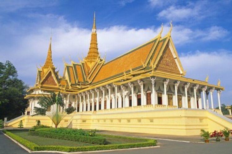 金边市区游览金碧辉煌的【柬埔寨王宫】,它建于1866年,现在依然是国王的宅邸,了解柬埔寨国王的生活起居(只参观开放部分),在王宫内我们还可以看到银砖铺设的地面、皇家稀世珍宝、祖母绿玉佛、镶满钻石的金、银、铜、佛等。