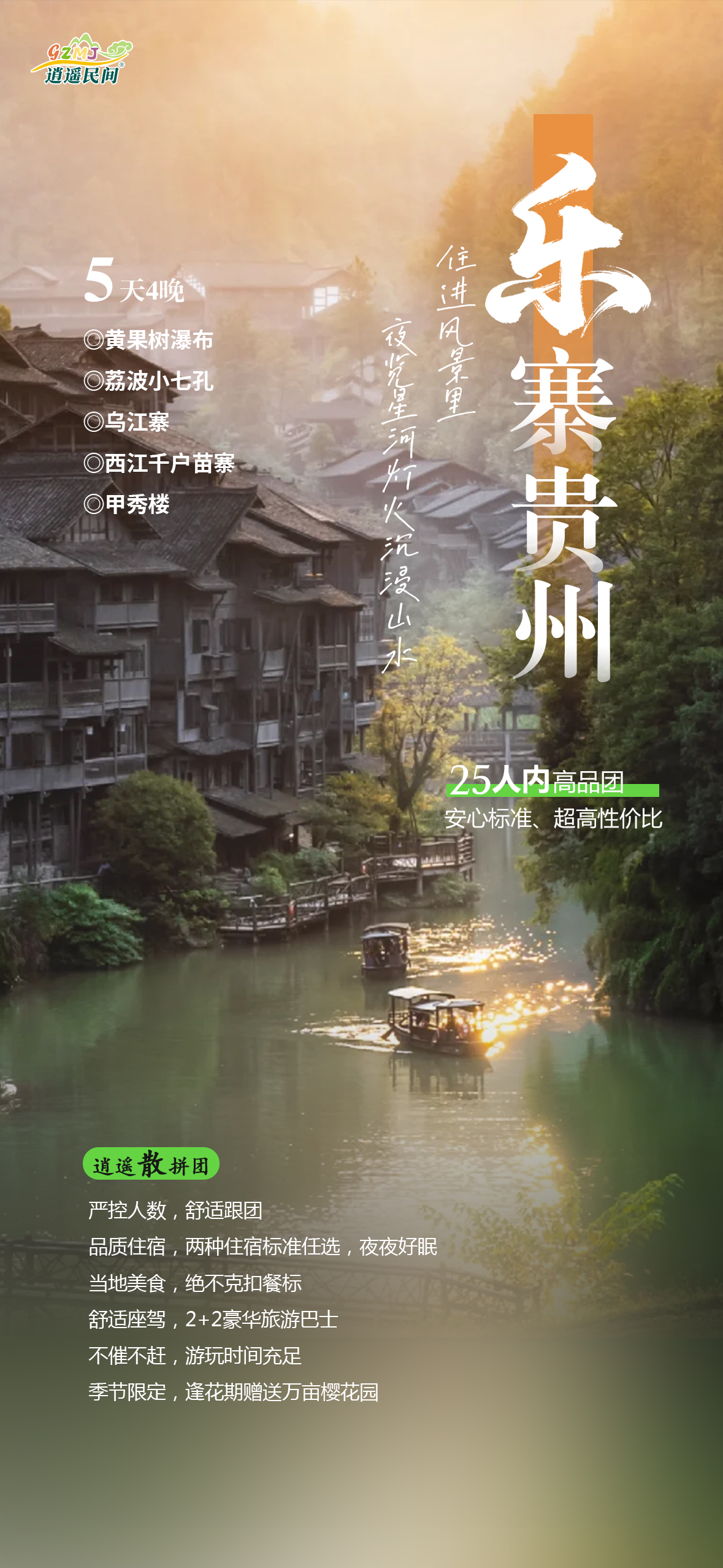 乐寨贵州-5天4晚-25人全国散拼团王牌景区一次玩转,住进风景里夜览星河灯火沉浸山水