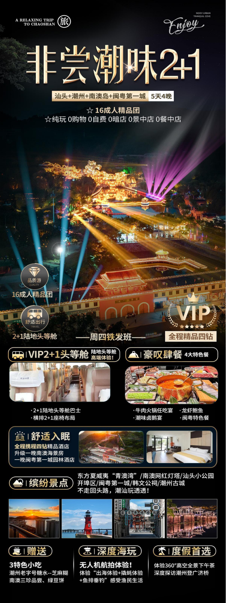 【舒适入眠】全程携程四钻精品酒店、升级一晚南澳海景酒店、一晚闽粤第一城园林酒店