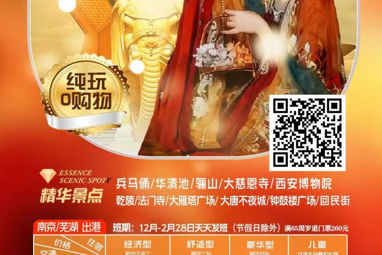 - 自费:4.兵马俑景交 5 元/人 5.华清宫景交 20 元/人、骊山索道往返 60 元/人;