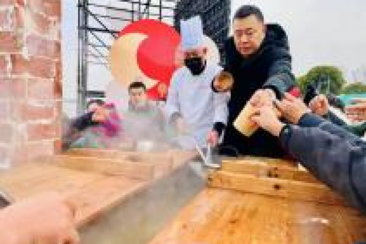 - 在大锅鱼汤区,游客以体验券兑换一碗“头汤 ”,温暖身心,品尝溱湖味道。