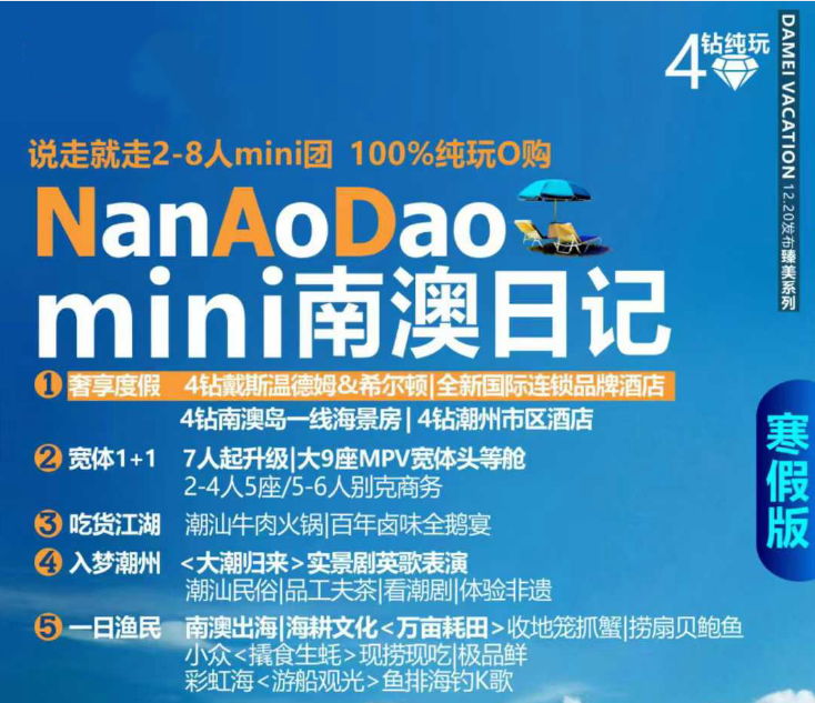 2、【住宿】3晚四钻酒店+1晚南澳岛住宿;