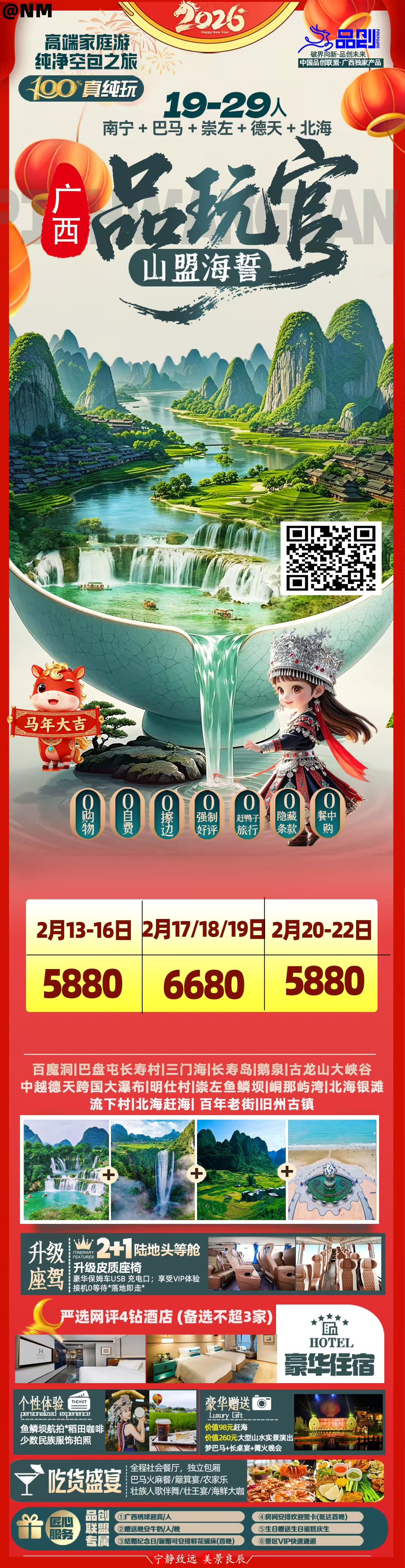 广西:品玩官之山盟海誓双飞6天5晚跟团游广西:品玩官之山盟海誓双飞6天5晚跟团游