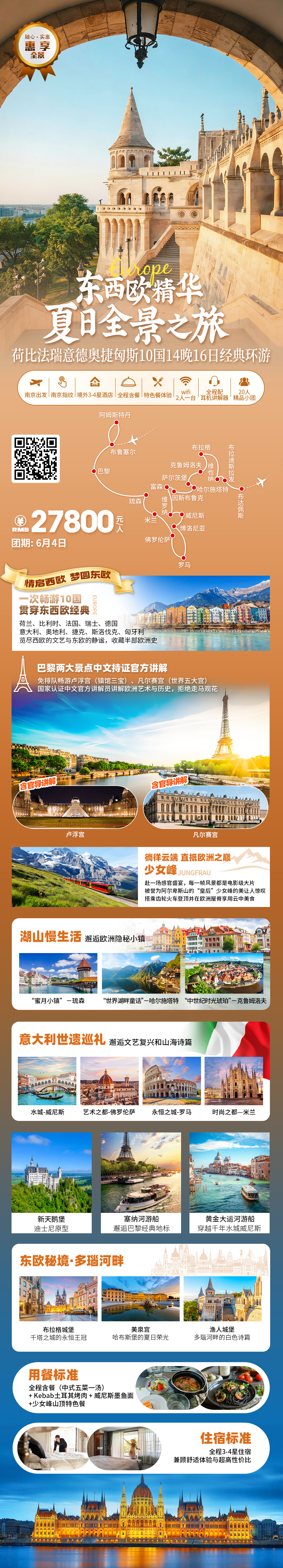 【惠享·全景】荷兰+比利时+法国+瑞士+德国+意大利+奥地利+捷克+斯洛伐克+匈牙利10国14晚16日跟团游荷兰、比利时、法国、瑞士、德国、意大利、奥地利、捷克、斯洛伐克、匈牙利