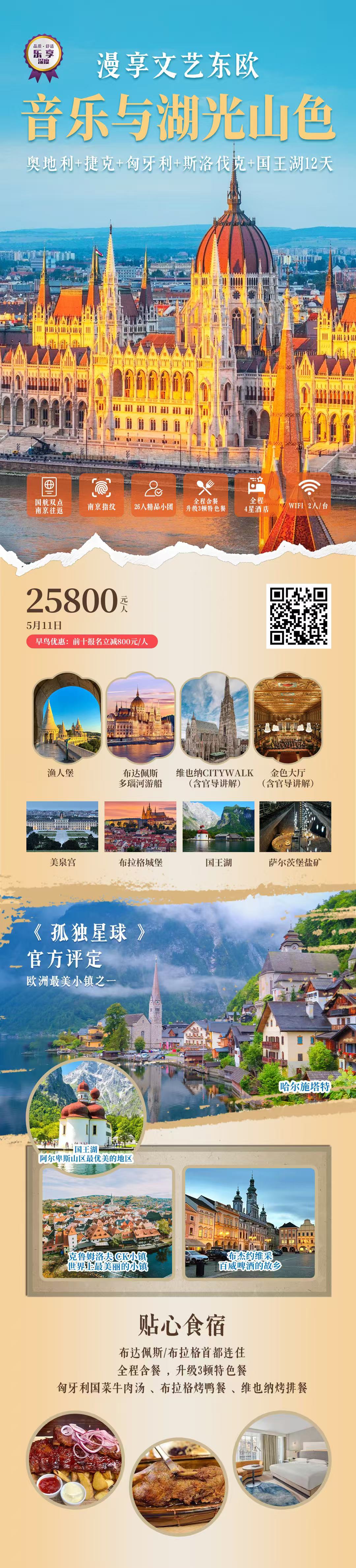 【乐享·深度】奥地利、捷克、匈牙利、斯洛伐克、 国王湖12天9晚跟团游渔人堡·多瑙河游船·布拉格城堡区·萨尔茨堡盐矿·金色大厅·美泉宫·国王湖