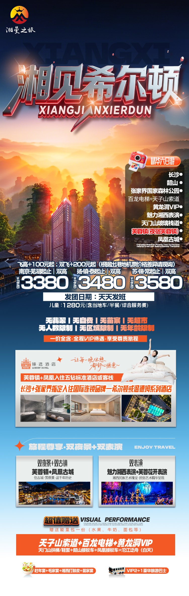 5、成人机票:江苏各地/长沙/江苏各地往返(特价机票不改签、不退票,经济舱位),全含;报价为参考价格,以当天报名机票折扣为准;