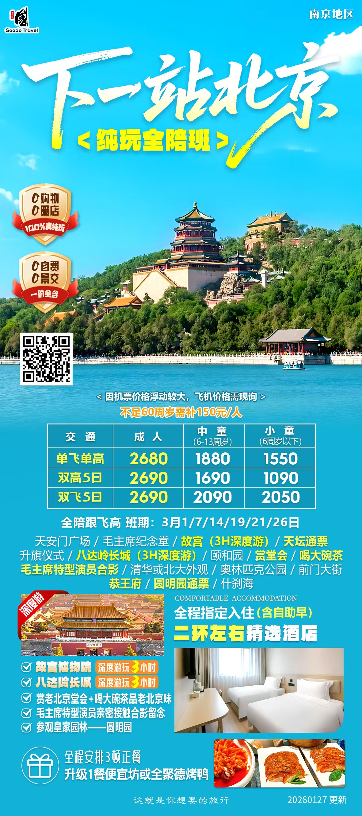 2026年3月下一站北京5天4晚跟团游0购物0暗店0自费0景区小交通!!!真纯玩