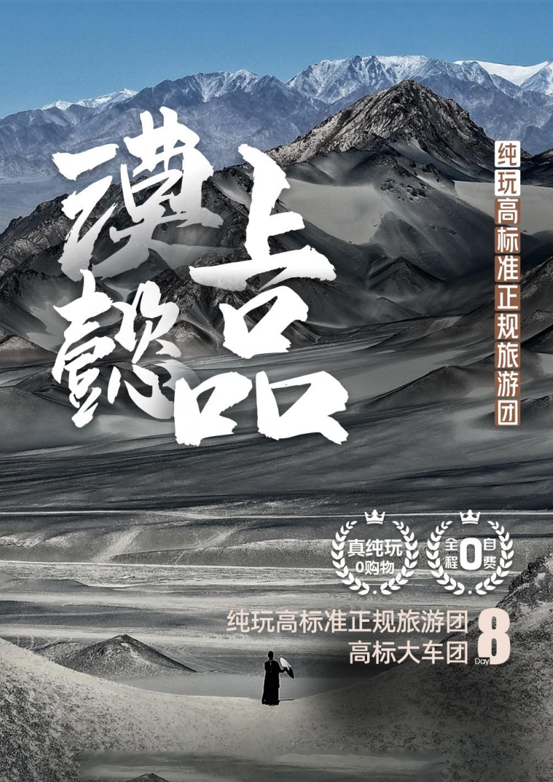 当天车程较长 ,可提前预备好颈枕 ,行车途中休息 ,准备好零食 ,路途辛苦、补充能量 ,记得在前一晚将相机、手机充满电 ,以免耽误您拍照 ,错过窗外美景张掖至敦煌路程长 ,会途径“瓜州服务区”休息上洗手间 !该服务区可能存在特产售卖摊点 ,本产品为真纯玩团 ,我社建议游客非必要不购买。