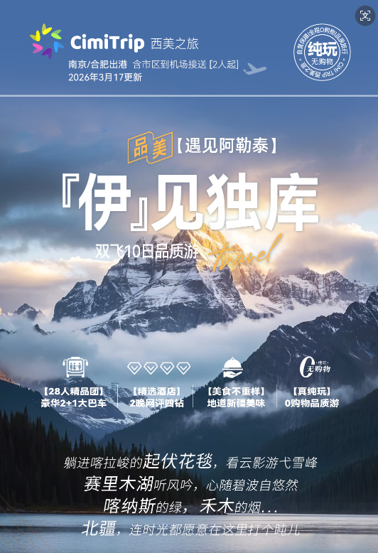 【品质纯玩】28人封顶精品团,0自费0购物0擦边,真正的纯净之旅(含景交),时间全部留给风景。