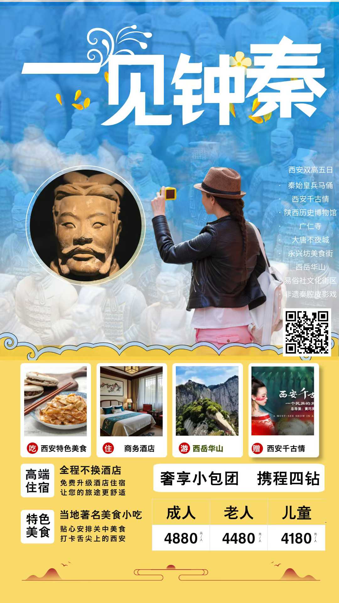 西安兵马俑+千古情+陕西历史博物馆+华山5天4晚定制团自营精品纯玩小天「西安千古情+陕西历史博物馆+广仁寺+华山+秦腔皮影戏」