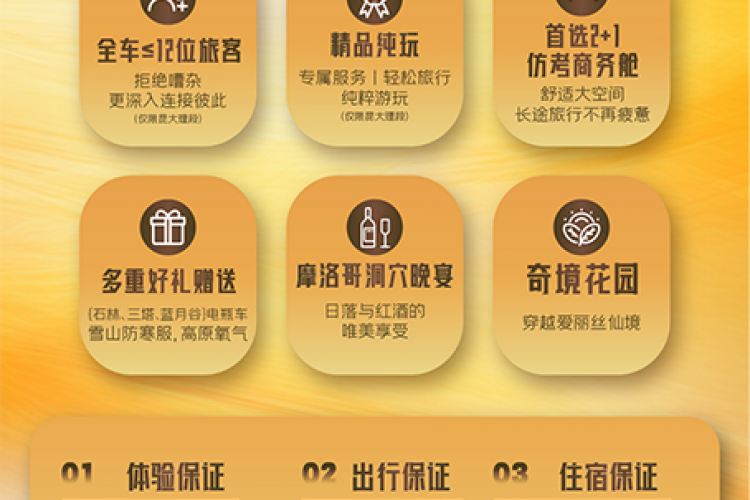 2.门票:行程所列景点首道大门票及行程内所含景区小交通(全程门票为旅行社打包优惠套票,客人持有任何优惠证件旅行社概不退票)