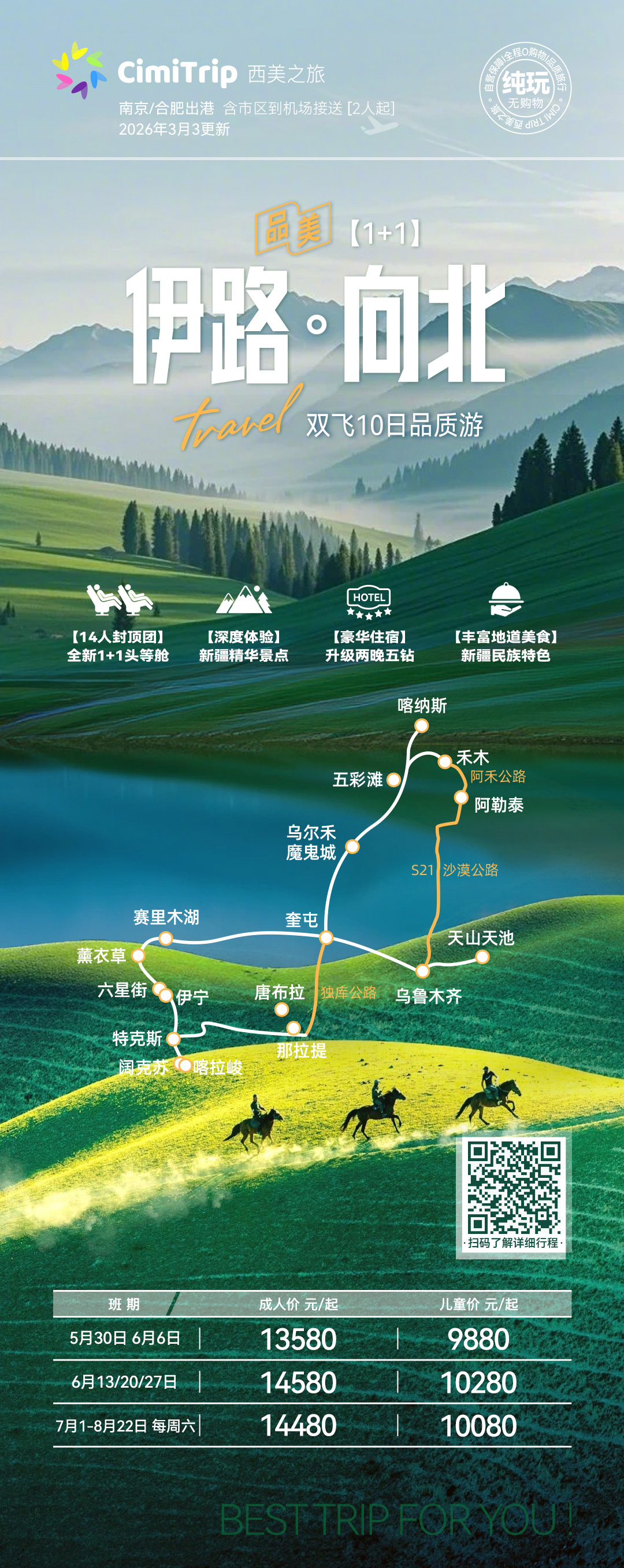 【品质纯玩】14人封顶精品团,0自费,0购物,0擦边,真正的纯净之旅(含景交)。