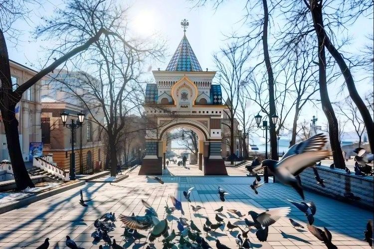 【胜利广场】这里可以说是海参崴跳动的“心脏”——既是地理位置上的中心,也是这座城市历史记忆和当下生活的交汇点。广场上有成群的鸽子,很多游客都会买一点瓜子或谷物,伸出手,鸽子就会落在你的胳膊上啄食,非常有趣,是拍照和感受当地慢生活的绝佳方式。