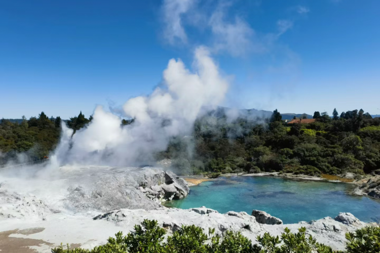 抵达后驱车前往怀托摩萤火虫洞(Waitomo Glowworm Caves)被称为“世界第九大奇迹 ”,是新西兰最具标志性的景点。在毛利语中,"Wai"意为水, "tomo"则是洞的意思;合在一起,Waitomo 即为“流水环绕的洞穴 ”。3000万年前,整个怀托摩地区淹没在海平面之下,层叠的石灰岩便在那海底的远古岁月中慢慢生成。如今,这些石灰岩地层隐藏在大片大片郁郁葱葱的草场下,成为新西兰最神奇的地下奇观。萤火虫吐着一粒接着一粒如珠子般的粘丝,以及尾部发出的蓝色萤光,星罗棋布攀附在岩洞深处的上方,像极了满天星斗般迷样的情景。乘船前行,梦幻般的萤火虫洞穴,形态各异的溶洞,还有无数的地下河和流水洞组成的一个个地下迷宫,使怀托摩成为旅行者心目中新西兰必到的目的地之一。随后前往地热公园。