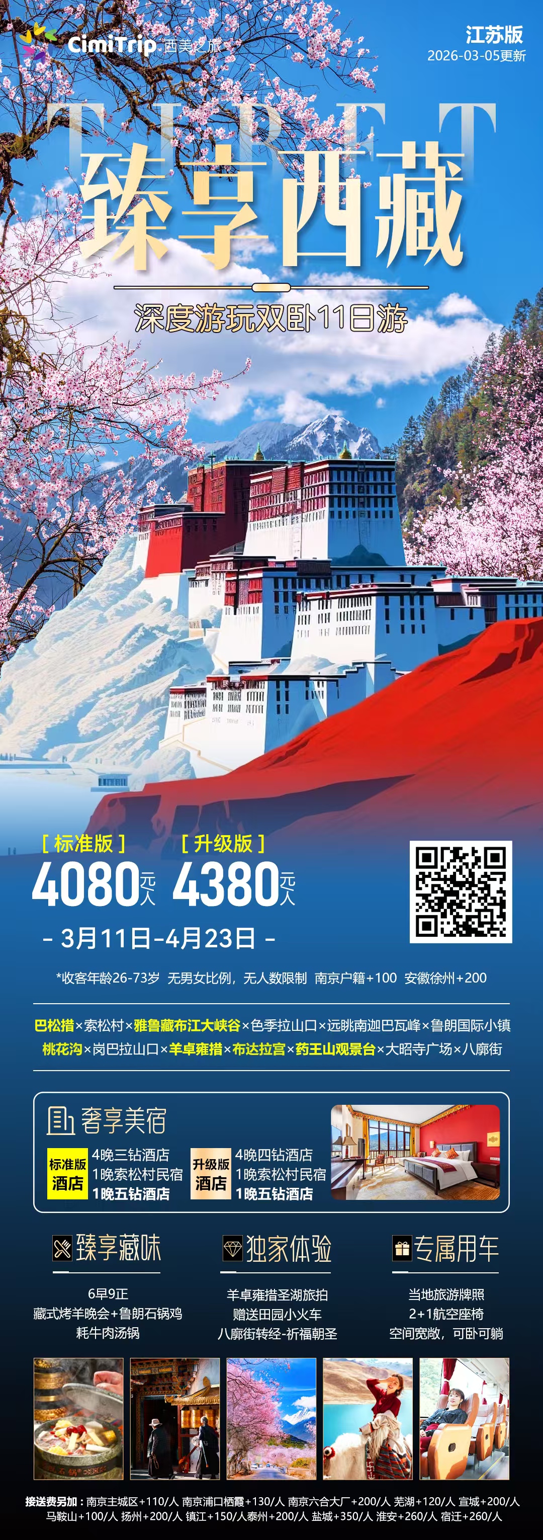 重要提示:由于近年来布宫门票渠道不一,限制较多。故此日行程同团人数可能增多,保证上布宫。