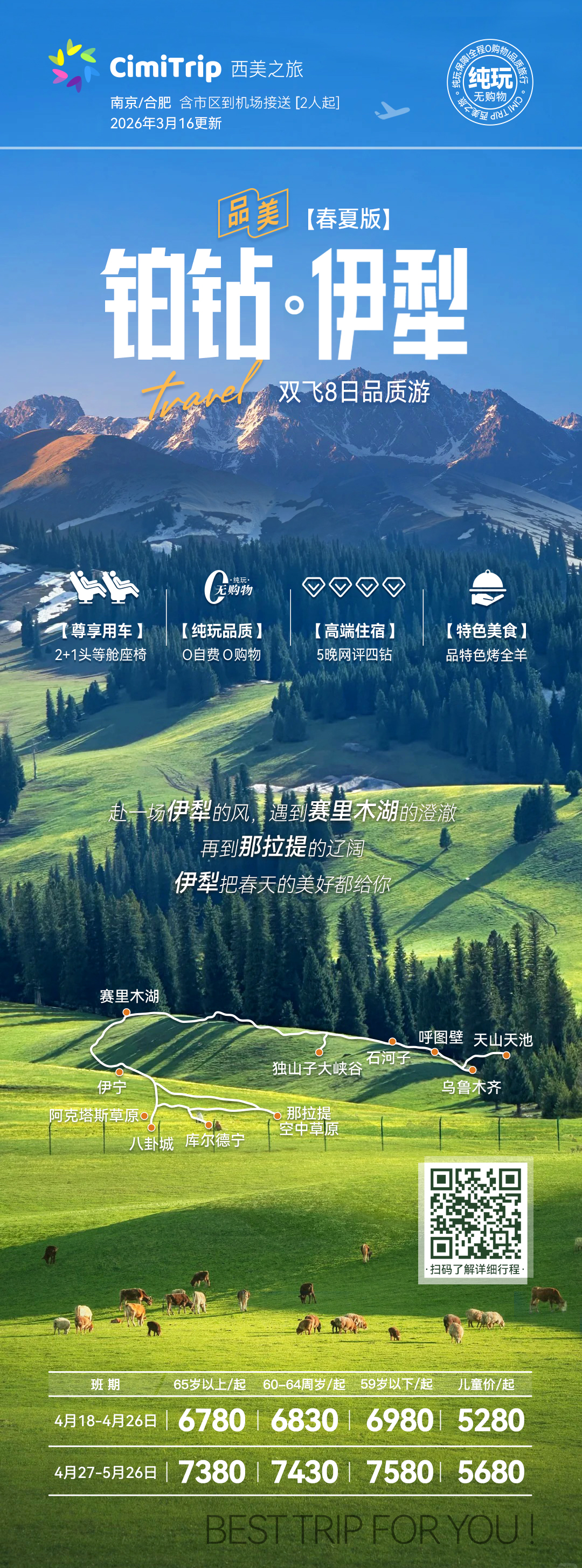 备注:如那拉提空中草原因天气等原因未开放,则置换为同等价格的【河谷草原】;