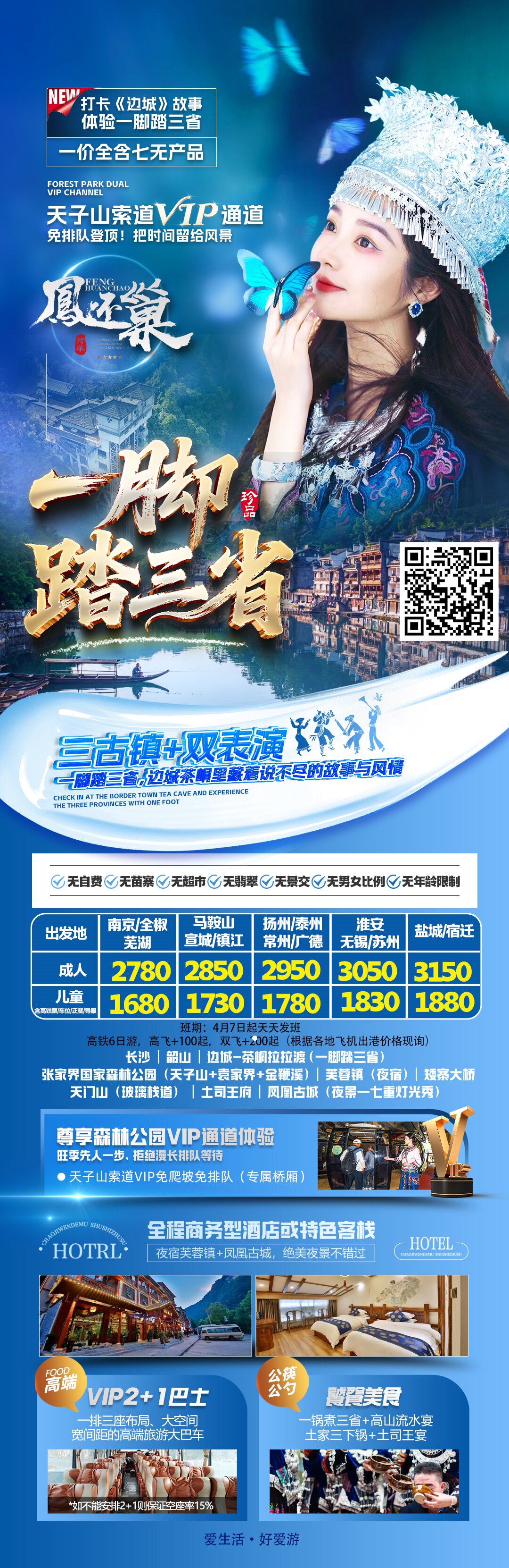 4、住房:长沙/张家界/凤凰三钻酒店或客栈+芙蓉镇特色客栈;酒店无正规三人间。无一次性洗漱用品,不占床无退费