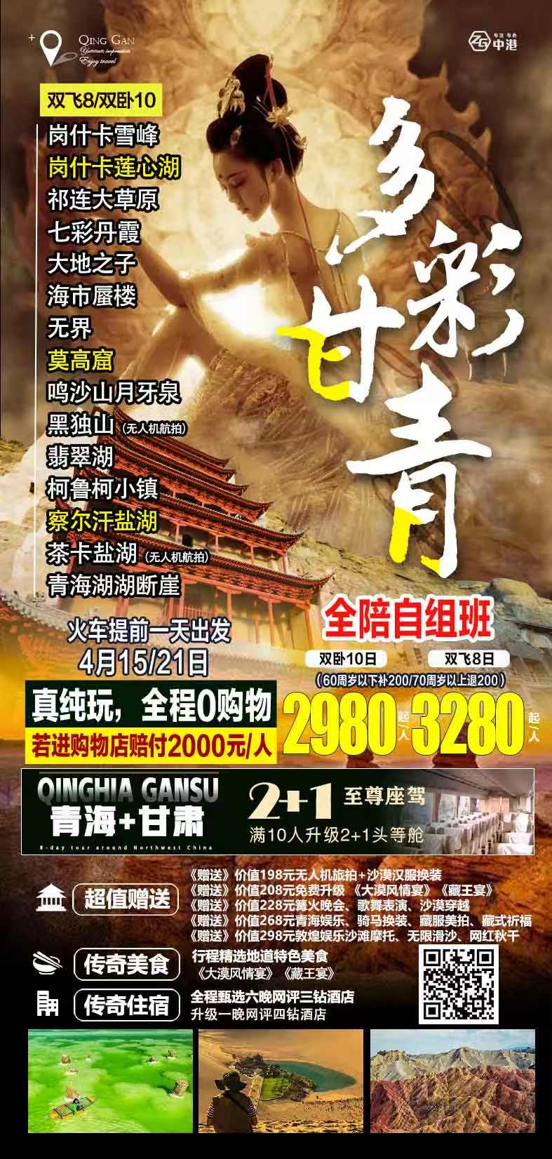 “人生就像一场旅行,不必在乎目的地,在乎的是沿途的风景以及看风景的心情,让心灵去旅行”,不是每一条广告都能让人倒背如流,它之所以能成为精品是因为它在某个方面真正触动了我们的心灵,而我们每个人都是匆匆的行者,在不同的驿站驻足、停留、观望、休憩,再鼓足勇气继续前行,今天我们将带着本次旅途感悟和美好乘机返回温暖的家,圆满结束此次旅途,欢迎您有机会再次来到甘青线观光,感谢您一路上对我们工作人员的支持、理解和配合。(此天不含导游)