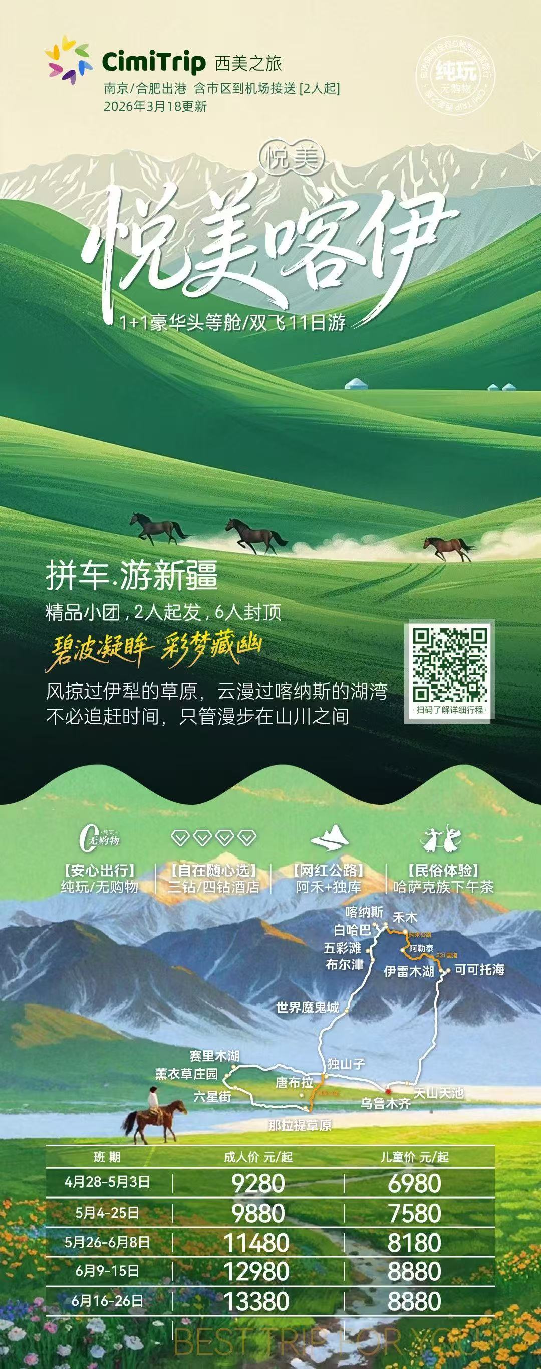 - 住宿:乌鲁木齐【3钻】:希岸酒店、康泊酒店、双洲国际酒店、维也纳酒店、林海酒店、宜必思酒店、沁园酒店、柒朵酒店、九方财富酒店、中朗天润酒店、苹果酒店、如家精选酒店、舒达酒店、星程酒店或其他同级酒店