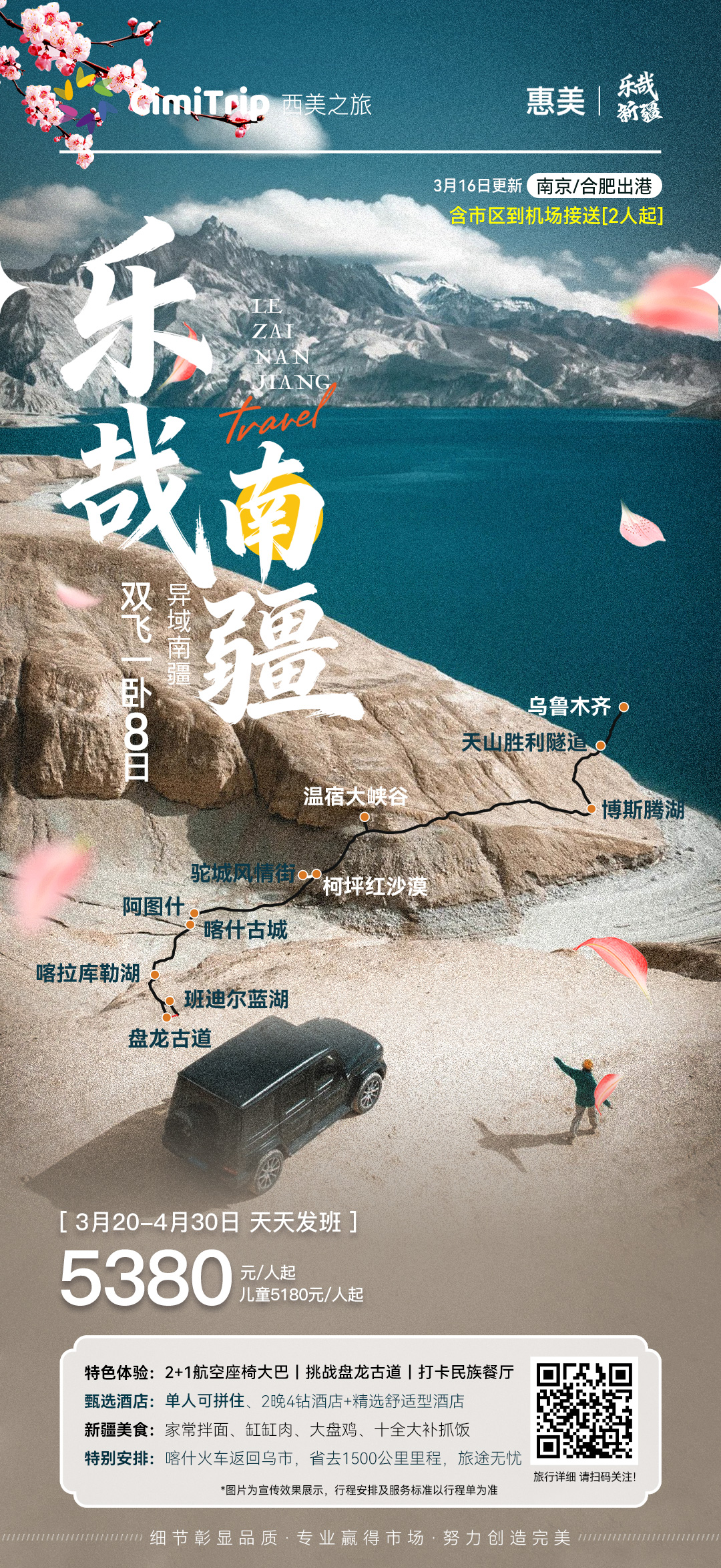 4新疆地域辽阔,乘车时间较长,路途限速严格,APP定位跟踪,安检较多,所以比较耽误时间,行程中的行车时间均为参考时间。