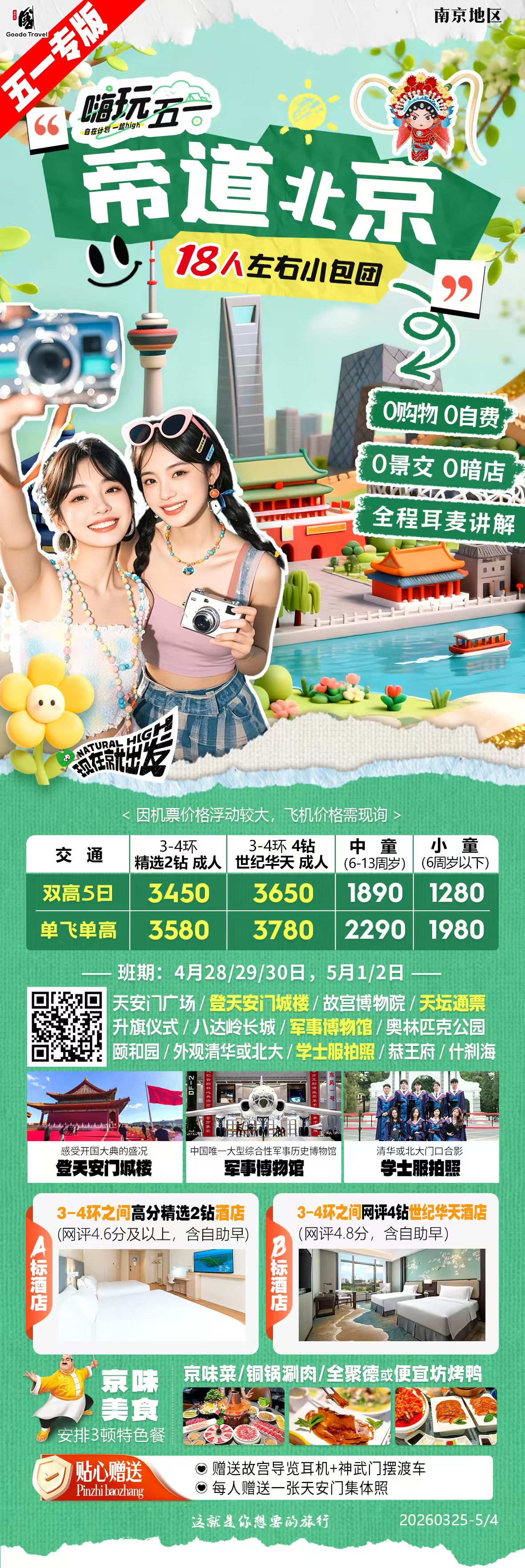 2026年五一节帝道北京5天4晚跟团游——2钻0购物0暗店0自费0景区小交通,一价全含!!!