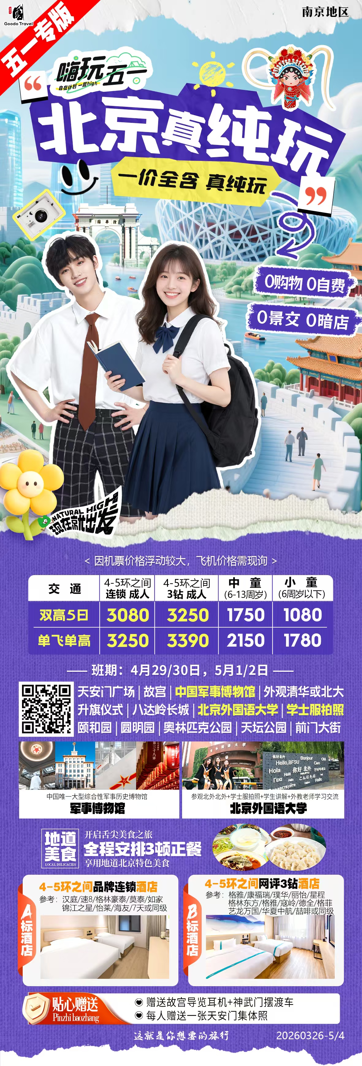2026年五一节北京真纯玩——2钻5天4晚跟团游0购物0暗店0自费0景区小交通!!!真纯玩
