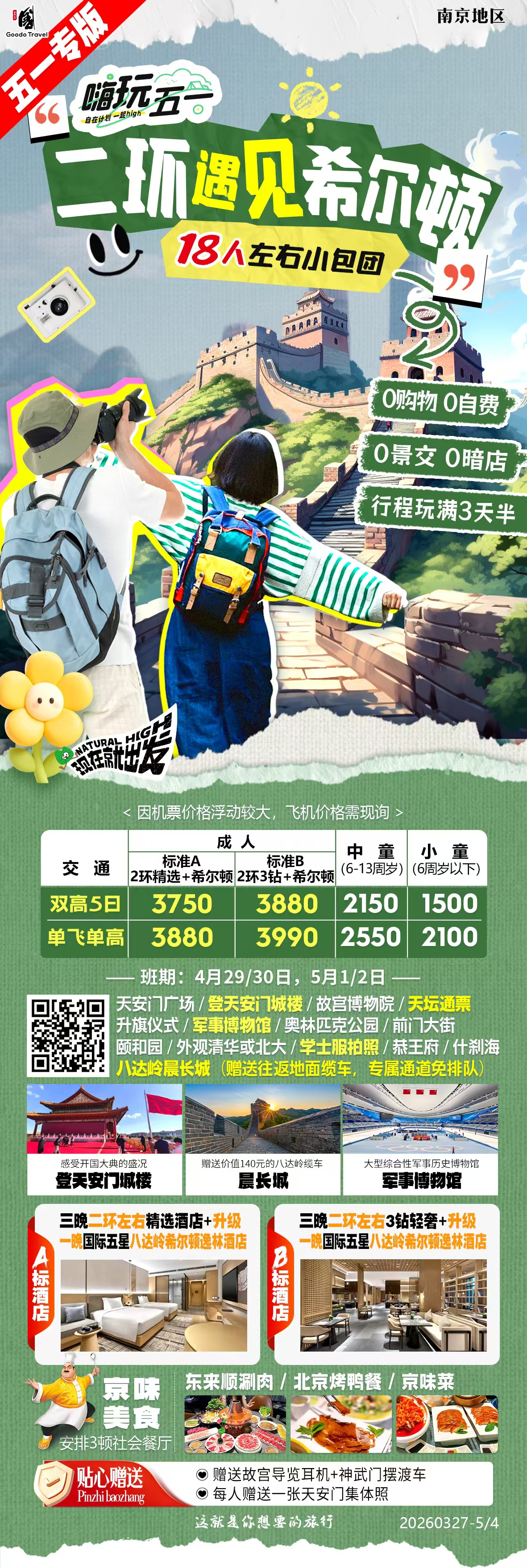 2026年五一节二环遇见希尔顿——精选+希尔顿北京5天4晚跟团游0购物0暗店0自费0景区小交通,一价全含!!!