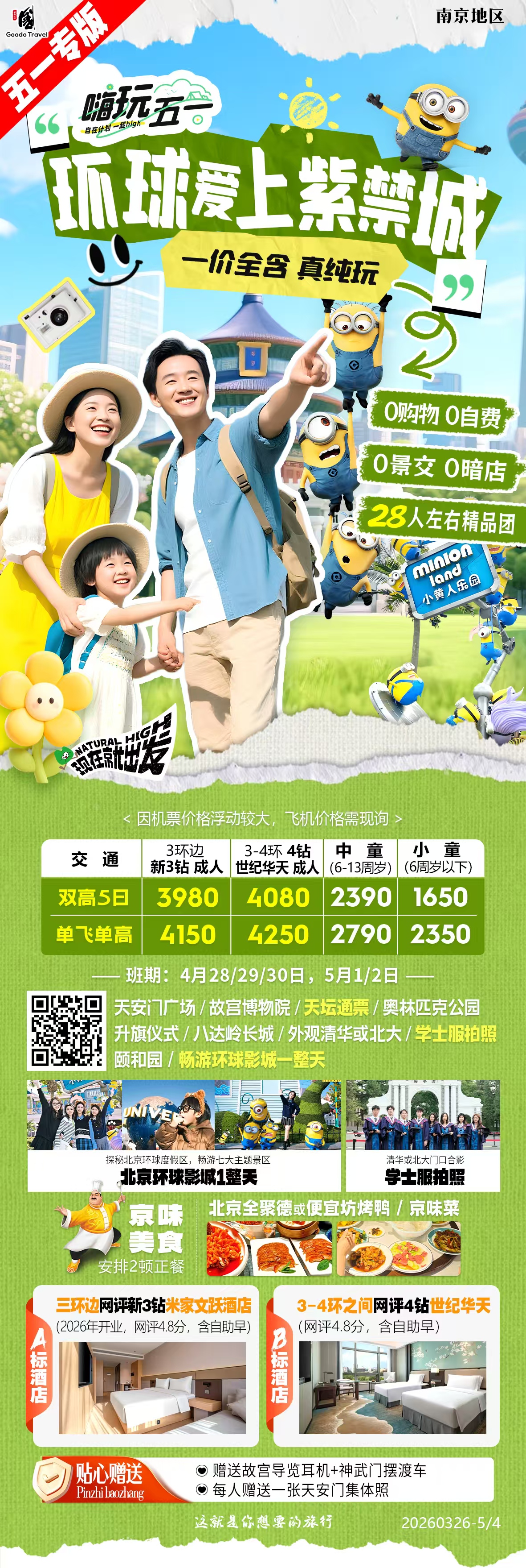 2026年五一节环球爱上紫禁城北京5天4晚跟团游-4钻0购物0暗店0自费0景区小交通,一价全含!!!