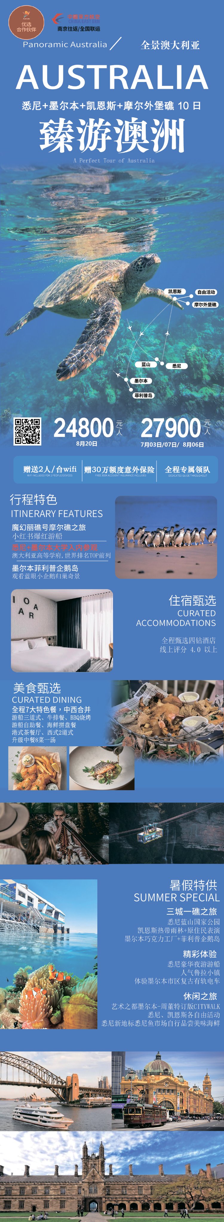 国旅自组【臻游澳洲】 澳大利亚东海岸10日(墨尔本进悉尼出)悉尼+墨尔本+凯恩斯+摩尔外堡礁+菲利普企鹅岛