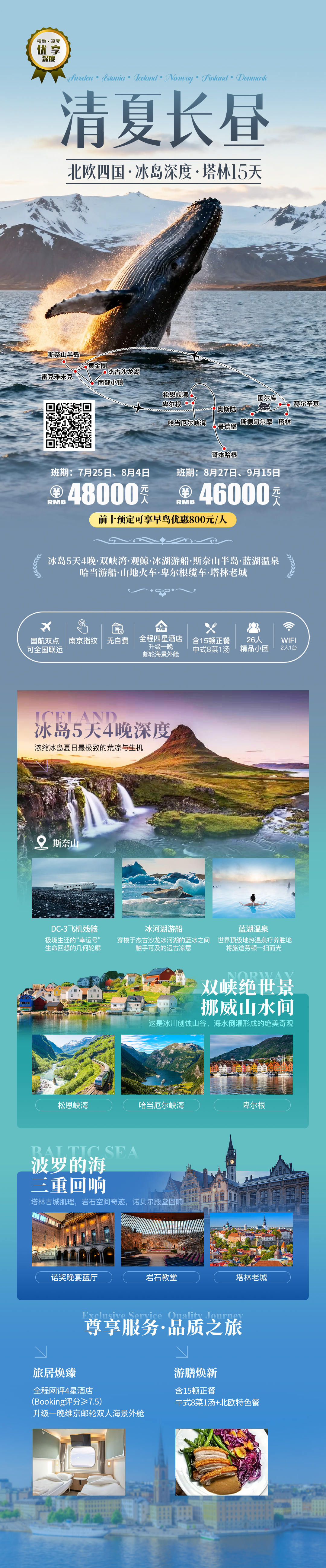 【优享·深度】北欧四国·冰岛深度·塔林 15日12晚跟团游双峡湾·观鲸·冰湖游船·斯奈山半岛·蓝湖温泉·哈当游船·山地火车·卑尔根缆车·塔林老城