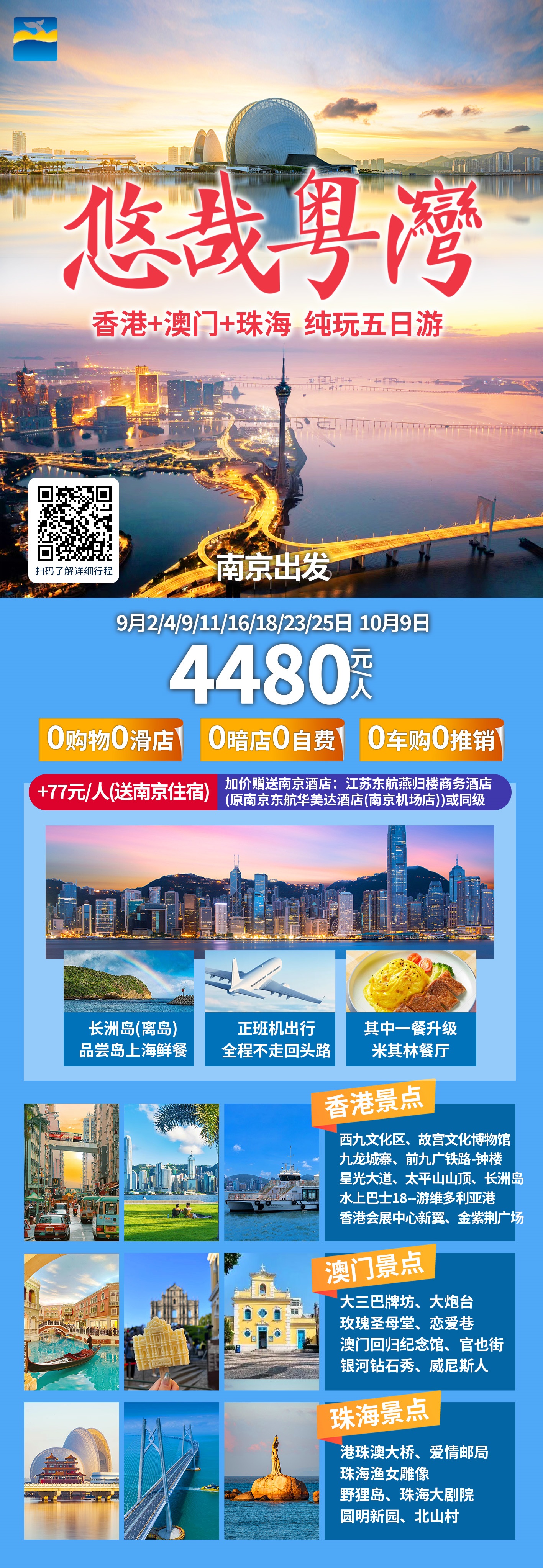 悠哉粤湾 香港.珠海.澳门尊享五日(香港进澳门出MU)香港.珠海.澳门