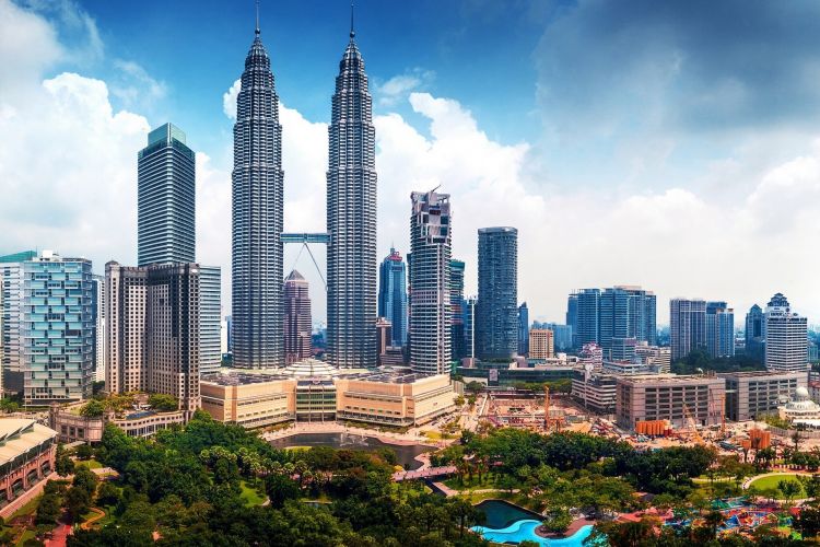 【双峰塔】(外观)双峰塔是马来西亚的标志性建筑,这幢外形独特的银色尖塔式建筑,号称世界最高的塔楼,是马来西亚经济蓬勃发展的象徵。