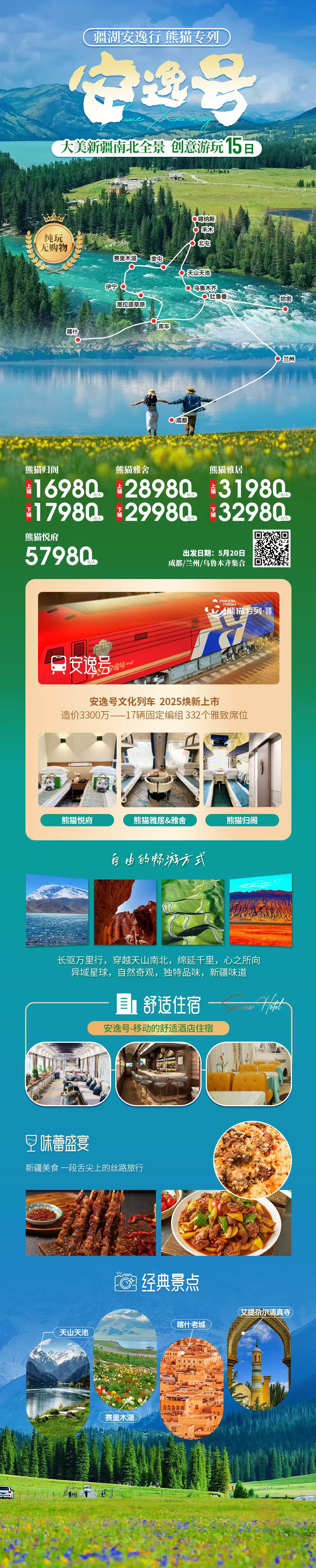 2026年新疆南北疆16日 专列成都安逸号 5.20 跟团游归阁/雅舍/雅居/悦府 5.20