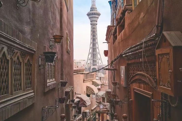 后抵达伊宁前往【六星街】,以其独特的六角形街巷而闻名,已成为包括特色街巷观光、文化展示、庭院旅游、特色餐饮娱乐、工艺品加工与零售等在内为一体的大型人文旅游景区,让我们一起唱着《苹果香》,去找寻歌词中描述的场景,例如“阿力克桑德的面包房“等。