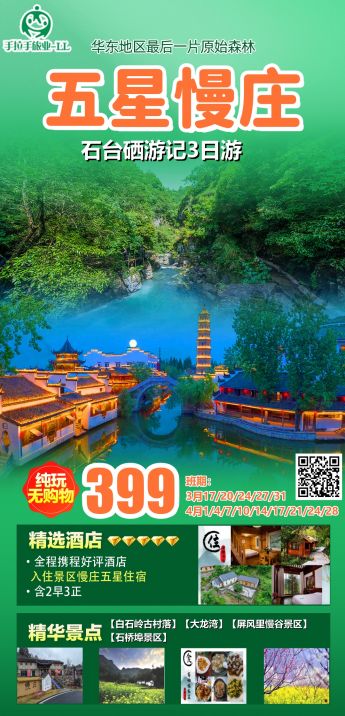 翡翠谷/九龙瀑+黄山三日游(豪华等)